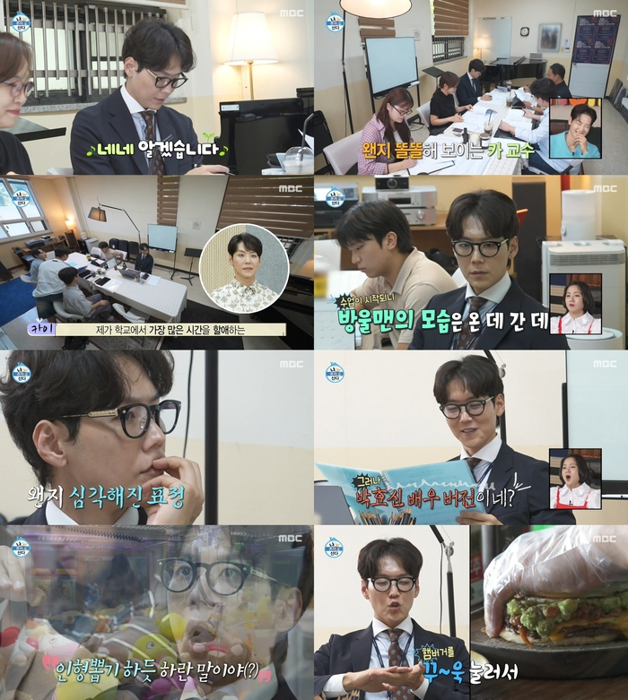 학교에 도착한 카이는 곧장 학생식당을 찾아 그의 소울푸드인 돈가스 정식을 먹으며 ‘짱구미’를 숨기지 못해 웃음을 자아냈다. 이어 진행된 교수회의에서는 ‘커피 담당’을 자청하며 바짝 긴장한 모습도 보였다. 이 모습을 지켜보던 코드 쿤스트는 “순풍산부인과의 의찬이 느낌 좀 있는 것 같다”고 하자, 박나래가 “똘똘이 느낌이 있다”라며 거들어 폭소가 터졌다.