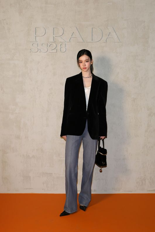 카리나는 25일(현지시간) 이탈리아 밀라노에서 열린 프라다의 2026 봄/여름 여성복 패션쇼에 브랜드 앰배서더로서 참석, ‘AI 미모’로 불리우는 세련된 비주얼과 독보적인 아우라로 현장을 압도했다.