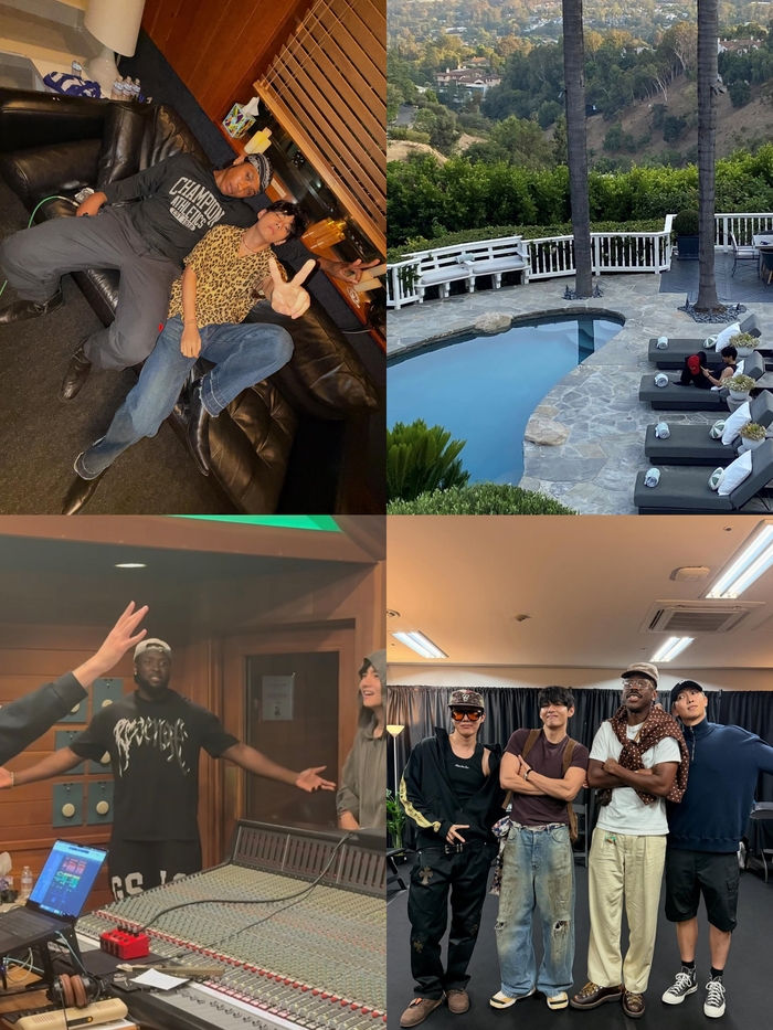 특히 방탄소년단의 미국 숙소와 작업실 사진도 함께 공개돼 팬들의 관심을 모았다. 숙소의 야외 수영장에서 혼자 여유롭게 썬탠을 즐기거나, 녹음실에서 아티스트들과 어울리는 모습은 ‘월드 스타’다운 여유를 보여준다.