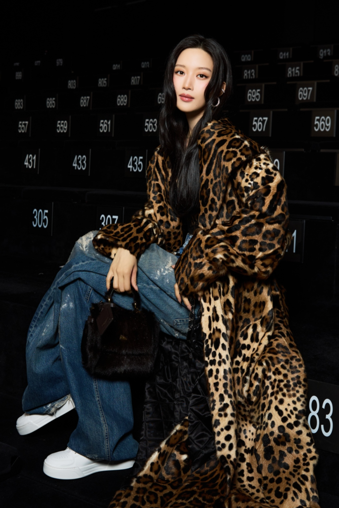 이날 문가영은 레오퍼드 패턴의 퍼 코트와 오버사이즈 데님, 벨트 레이어링으로 포인트를 준 스타일링을 선보였다.