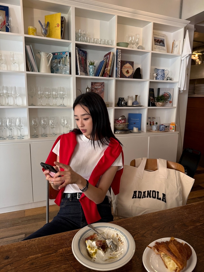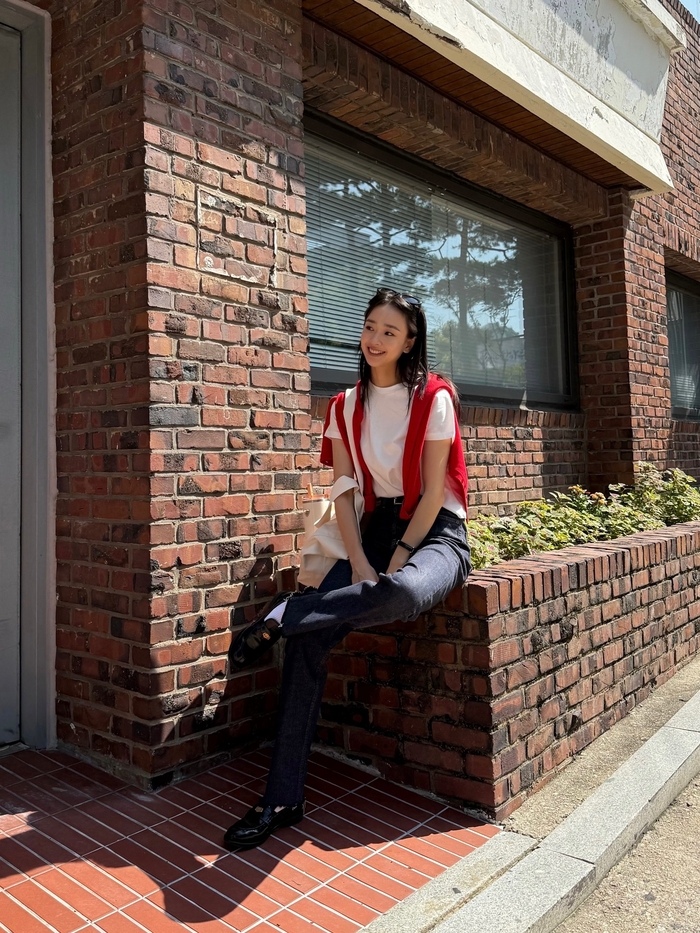 사진 속 손연재는 화이트 티셔츠에 짙은 네이비 진을 매치한 심플한 룩을 선보였다. 여기에 선명한 레드 컬러의 니트를 어깨에 무심하게 둘러 포인트를 주며, 캐주얼하면서도 세련된 ‘꾸안꾸’ 스타일링의 정석을 완성했다.