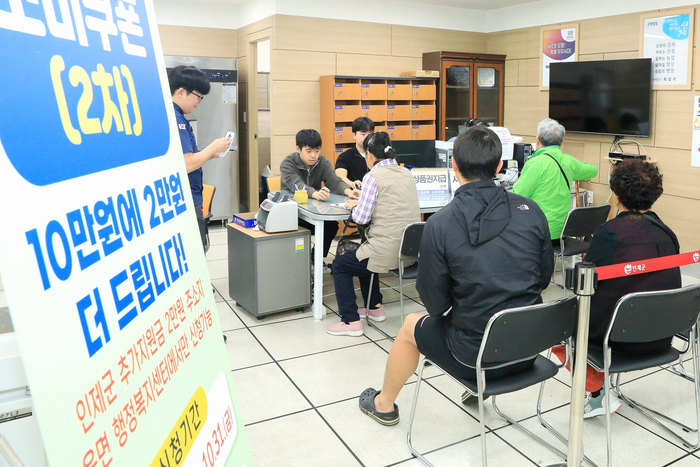 [스포츠서울ㅣ김기원기자]인제군이 2차 민생회복 소비쿠폰 지급을 시작한지 일주일 만에 전체 지급률 58%를 기록했다.