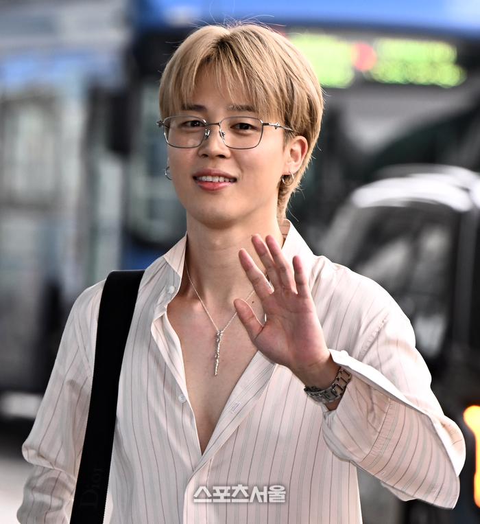 이날 지민은 크림색 스트라이프 셔츠에 블랙 와이드 팬츠를 매치한 시크한 스타일링으로 등장해 시선을 사로잡았다. 특히 여유로운 실루엣의 스트라이프 셔츠는 몇 개의 단추를 풀어 편안하면서도 세련된 분위기를 연출했다. 여기에 와이드핏 블랙 팬츠를 조합해 모던하고 트렌디한 감각을 드러냈다. 액세서리로는 얇은 프레임의 사각 안경과 실버 체인 목걸이, 십자가 펜던트로 포인트를 줬다. 손목에는 시선을 끄는 메탈 워치를 착용해 디테일을 완성했다. 블랙 크로스백과 백팩으로 실용성까지 더한 지민의 스타일은 ‘공항 패션의 정석’을 보여줬다.
