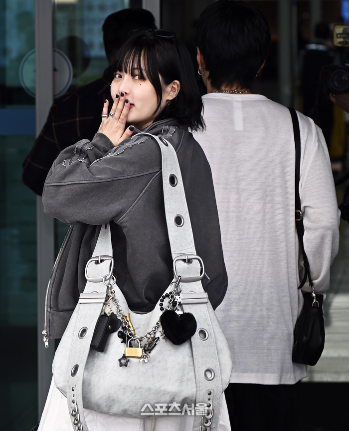 개성 넘치는 커플룩으로 두 사람만이 할 수 있는 모습이었다. 이날 용준형은 화이트 톤의 와플 니트에 블랙 와이드 팬츠를 매치해 편안하면서도 세련된 분위기를 연출했다. 블랙 프레임 안경과 십자가 펜던트 목걸이, 체인 액세서리로 포인트를 준 용준형은 숄더백을 메고 스터드 장식의 두툼한 플랫폼 슈즈로 힙한 감각을 더했다.