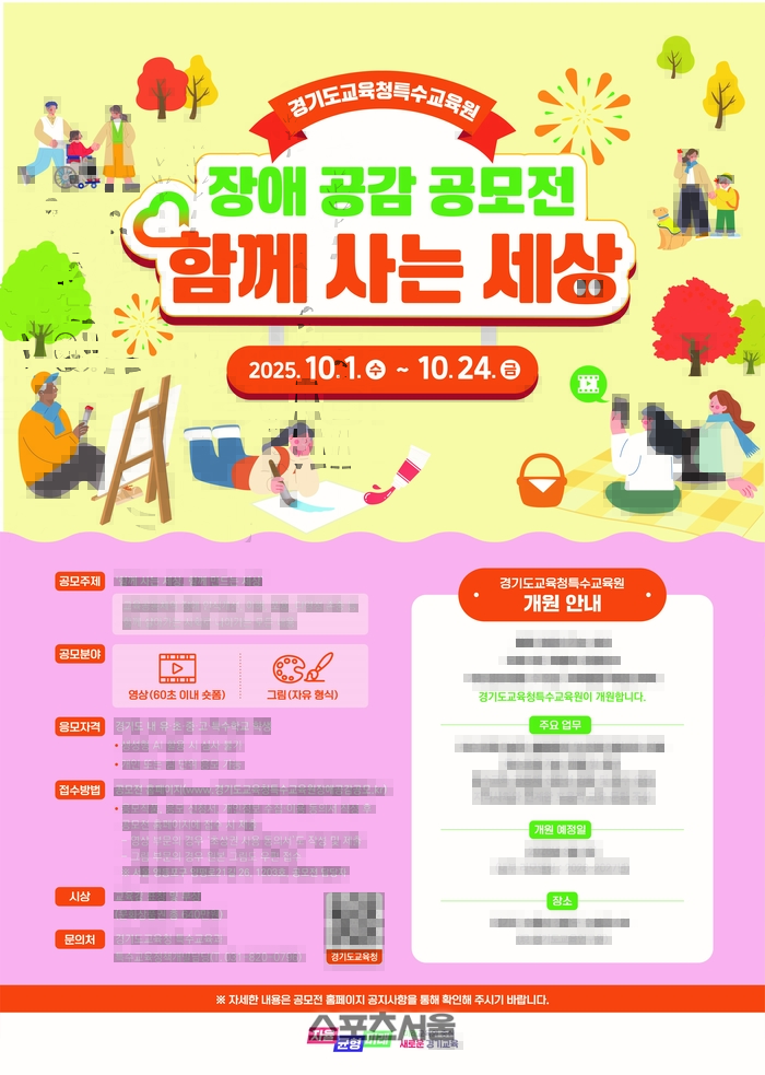 〔스포츠서울│수원=좌승훈기자〕경기도교육청은 ‘함께 사는 세상, 함께 만드는 세상’을 주제로 ‘장애 공감 콘텐츠 공모전’을 진행한다고 1일 밝혔다.