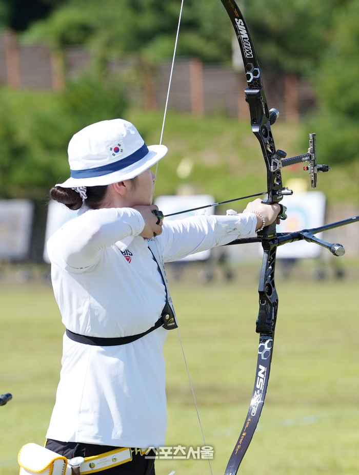 강채영(현대모비스)이 1일 광주광역시 광주국제양궁장과 5·18 민주광장 일대에서 열린 ‘현대자동차 정몽구배 한국양궁대회 2025’ 리커브 여자 통합 개인 예선전에서 화살을 쏘고 있다. 2025. 10. 1. 대한양궁협회 제공.