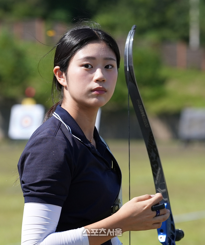 구슬(경기체고)이 1일 광주광역시 광주국제양궁장과 5·18 민주광장 일대에서 열린 ‘현대자동차 정몽구배 한국양궁대회 2025’ 리커브 여자 통합 개인 예선전에서 슈팅을 준비하고 있다. 2025. 10. 1. 대한양궁협회 제공.