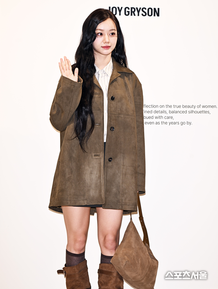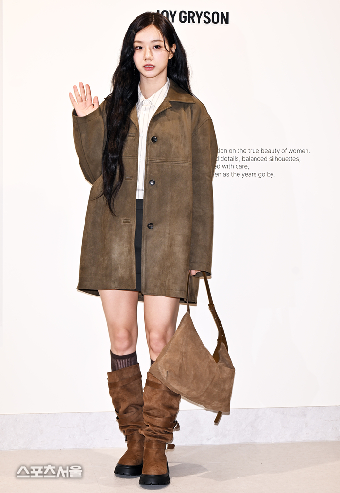 한편 혜리는 이날 시크하면서 편안한 가을 스타일링을 선보였다. 혜리가 선택한 아이템은 브라운 톤의 스웨이드 코트로, 고급스러운 소재감과 여유로운 실루엣이 돋보였다.