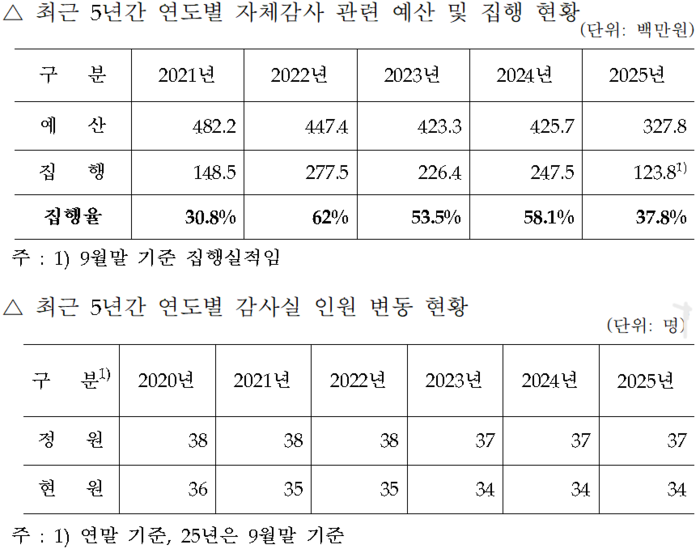최근 5년간 감사활동 예산집행도 저조, 감사 인력도 부족