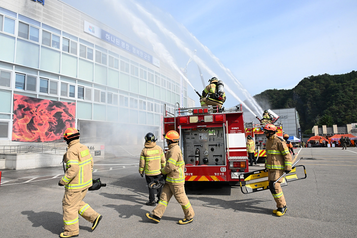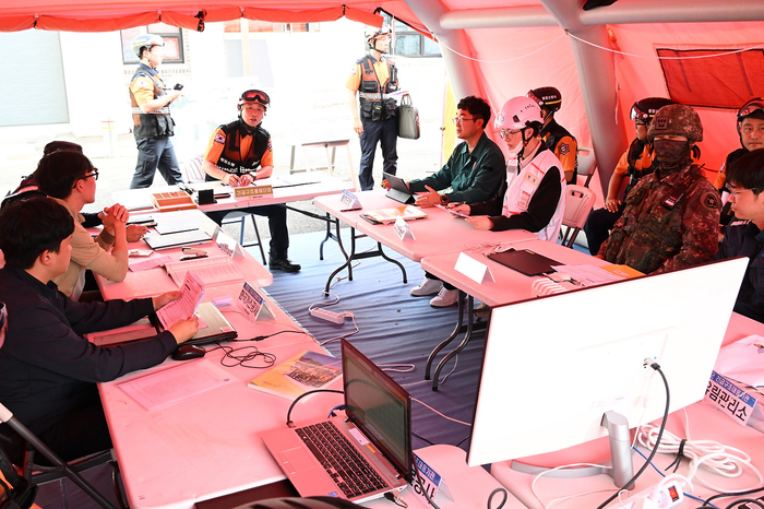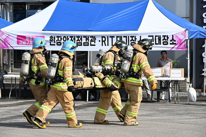 현장훈련에서는 자위소방활동과 재난안전통신망(PS-LTE)을 통한 상황 보고·전파, 긴급구조통제단 가동, 통합지원본부 운영 등 재난대응 단계별 사고 수습 체계를 점검하는 데 중점을 뒀다.