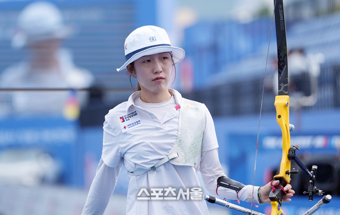 조한이(순천여고)가 2일 광주광역시 5·18 민주광장에서 열린 ‘현대자동차 정몽구배 한국양궁대회 2025’ 리커브 여자 통합 개인 16강전을 마친 뒤 경기장을 빠져나가고 있다. 2025. 10. 2. 대한양궁협회 제공.