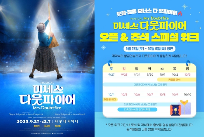 [스포츠서울 | 표권향 기자] 전 세계 무대를 웃음과 감동으로 사로잡은 글로벌 히트 뮤지컬 ‘미세스 다웃파이어’가 추석 황금연휴를 맞아 다채로운 이벤트와 혜택을 마련했다.