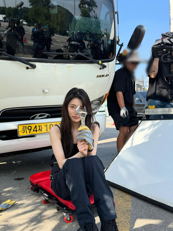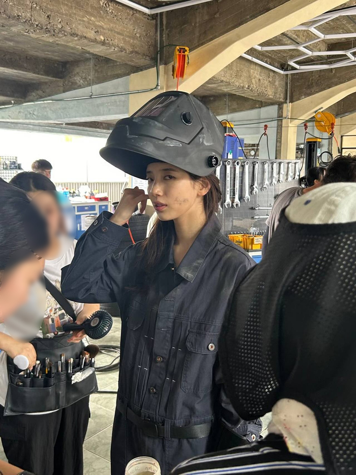 작업복을 입고 차 앞에서 스패너를 든 채 카메라를 응시하는 모습에서는 강렬한 카리스마가 느껴진다. 또 다른 사진에서는 작업복에 용접 헬멧까지 착용한 채 촬영 준비를 하고 있어, ‘감정 결여’ 캐릭터 가영이 선보일 예측 불가한 직업과 반전 매력에 궁금증을 더한다.