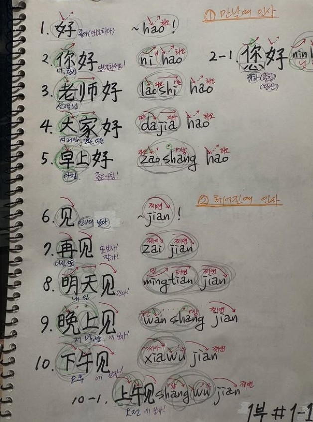“HSK 1급 남미숙 중국어 레벨1이 총16과 더군요. 16부작 중국어 드라마 찍는다고 생각하고 드라마 제목은 김형묵 중국어 표기도 장면 대사 암기처럼 1부#1 이렇게 똑같이 표기하며 시작하였습니다”라고 계획을 공개했다.