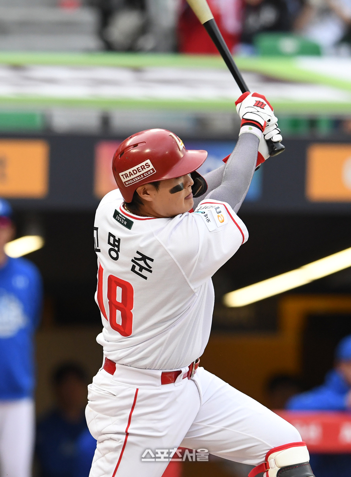 SSG 고명준이 9일 인천 SSG랜더스필드에서 열린 2025 KBO리그 삼성과의 준플레이오프 1차전 7회말 1사 1루 상황에서 삼성 투수 김태훈을 상대로 추격 2점 홈런을 치고 있다. 2025. 10. 9.