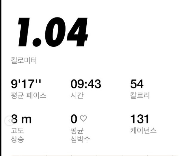 하지만 이어진 사진에는 반전이 있었다. 그가 공개한 운동 기록 앱 화면에는 달린 거리가 ‘1.04km’로 표시돼 있었던 것. ‘폭풍의 질주’라는 표현과는 사뭇 다른 짧은 거리에 팬들은 웃음을 터뜨렸다.