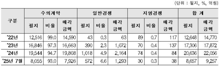 국유재산법에 따라 일반경쟁 원칙임에도 일반경쟁 비율은 4.9% 그쳐