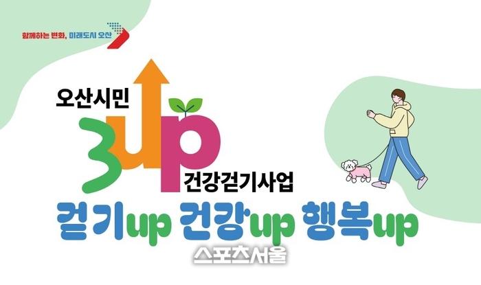 〔스포츠서울│오산=좌승훈기자〕경기 오산시는 오는 12월 31일까지 시민들의 꾸준한 건강관리를 돕기 위해 ‘3UP 건강걷기 챌린지’를 운영한다고 10일 밝혔다.
