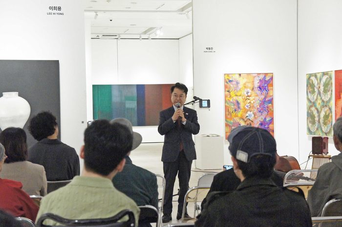[스포츠서울ㅣ춘천=김기원기자]‘2025 춘천 모두의 미술’이 10일 춘천문화예술회관 전시관에서 개막했다. ‘PLAYERS’를 주제로 열린 이번 전시는 춘천에서 활동하는 작가들의 회화, 조각, 설치 등 작품 150여 점을 선보인다. 육동한 시장은 이날 열린 개막식에 참석해 “창의와 열정이 살아있는 문화도시 춘천을 함께 그려가자”고 말했다.
