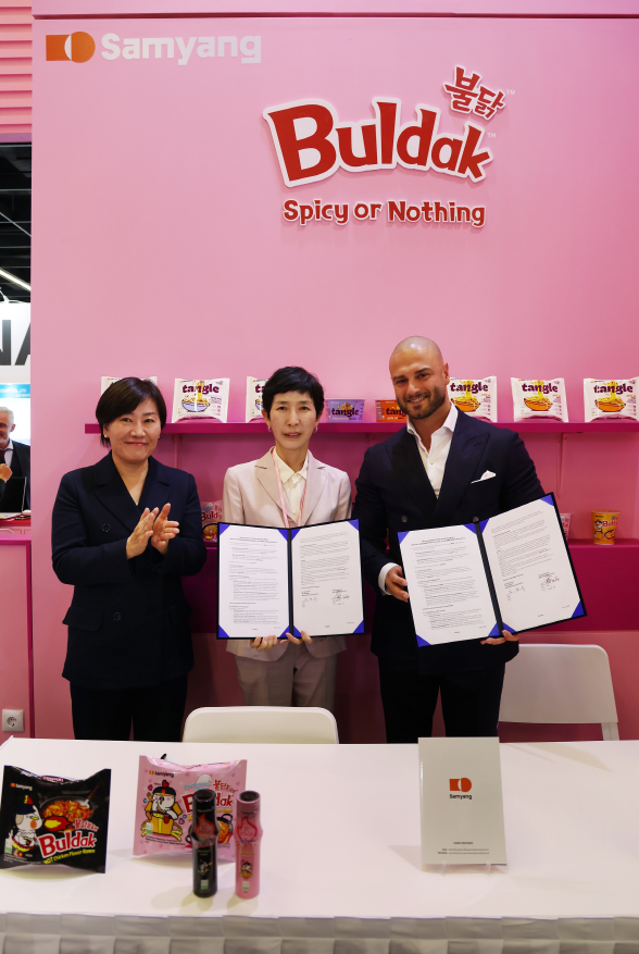 삼양식품 부스는 ‘Buldak Spicy Club’을 콘셉트로 구성됐다. 김정수 부회장은 글로벌 식품외식산업 관계자들과 소통하며 홍보에 힘을 실었다. 또 프랑스 대형채널 유통전문업체 ‘SRG International’社와 프랑스 현지 유통에 관한 MOU를 체결해 유럽시장 진출 가속화의 발판을 마련했다.