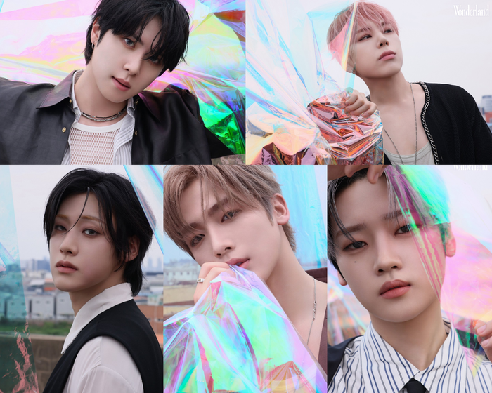 공개된 사진 속 위아이는 오로라 빛이 감도는 필름지를 활용, 현실을 벗어난 상상의 공간 원더랜드(Wonderland)를 형상화한 모습이다. 이들은 각기 다른 눈빛과 포즈, 제스처로 신비로우면서도 몽환적인 매력을 배가했다.