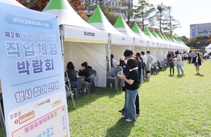 [스포츠서울ㅣ김기원기자]11일 강원대학교 삼척캠퍼스 잔디광장에서 교육발전특구 시범지역 사업의 일환으로 강원대학교 15개 학과가 참여해 각 전공을 바탕으로 다양한 직업체험 프로그램을 운영했다.