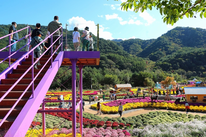 특히 ‘행복하길’ 구역의 테라스하우스와 오두막을 활용한 ‘향기 가득한 꽃마을’은 관람객들의 발길이 끊이지 않는 대표 포토존으로 자리 잡았고, 소나무숲으로 둘러싸인 ‘힐링하길’ 구역에서는 트리하우스, 트리클라이밍, 짚라인, 해먹, 그네 등 체험시설이 가족 단위 방문객에게 큰 인기를 얻고 있다.