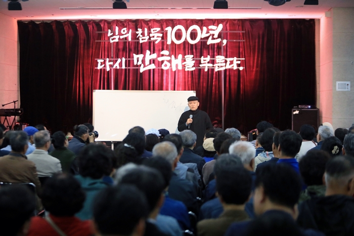 [스포츠서울ㅣ김기원기자]‘님의 침묵’ 100주년 기념사업 선포식이 지난 11일 오후 3시 인제 만해마을 일원에서 열렸다. 이날 행사에서는 ‘도올 김용옥’ 선생의 초청 강연, 기념사업 선포식, 기념 공연 등이 진행됐다.