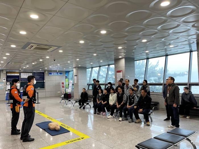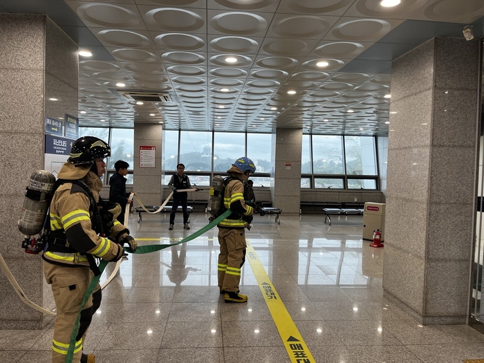 훈련은 용화역 1층 대합실에서 화재가 발생한 상황을 가정해 실시됐다. 자위소방대는 화재 발생 시 초기 상황을 보고하고, 탑승장을 포함한 청사 내부에 있던 관광객과 탑승객을 안전하게 대피시키는 임무를 수행했다. 또한 자체소방시설인 소화기와 옥내소화전을 활용해 초기 화재 진압 훈련을 병행하며 실제 대응 능력을 점검했다.