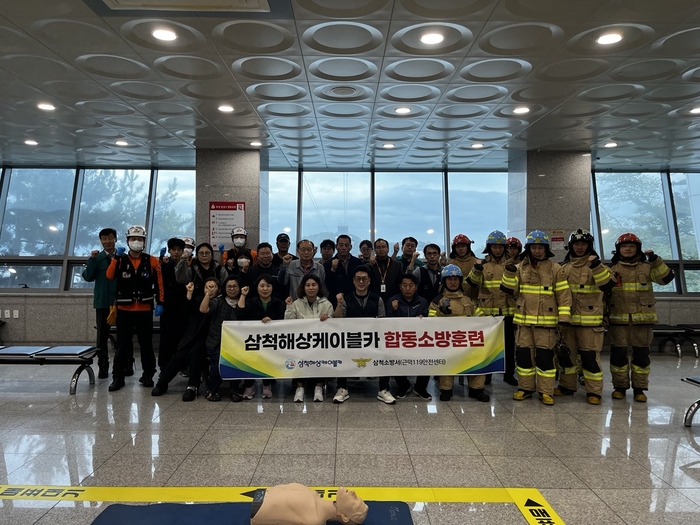 [스포츠서울ㅣ김기원기자]삼척시는 10월 10일 오후 2시 삼척해상케이블카 용화역 광장 일원에서 삼척해상케이블카와 삼척소방서 근덕119안전센터가 합동으로 소방훈련을 실시했다고 밝혔다.