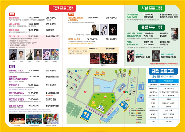 (지역예술인 공연 및 전시) △2025 강원미술 경계와 공감展, △강원국악한마당, △풍물패 길놀이, △강원합창제, △강원클래식대축전, △은가람버스킹 등