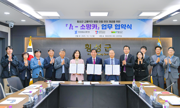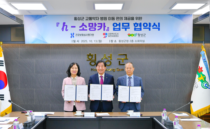 [스포츠서울ㅣ김기원기자]횡성군은 의료 사각지역 교통약자를 위한 병원이동용 차량 지원 사업 추진을 위해 13일 횡성군청에서 심평원·강원혁신도시발전지원센터와 업무협약을 체결했다.