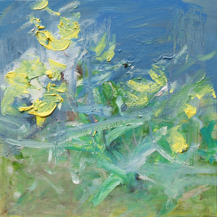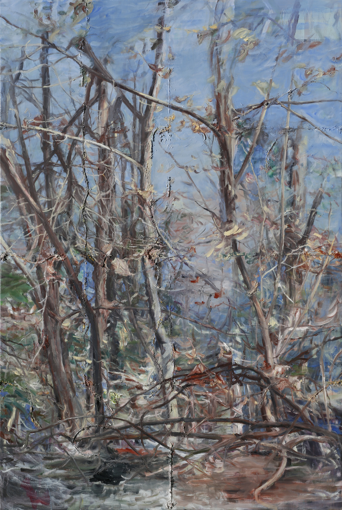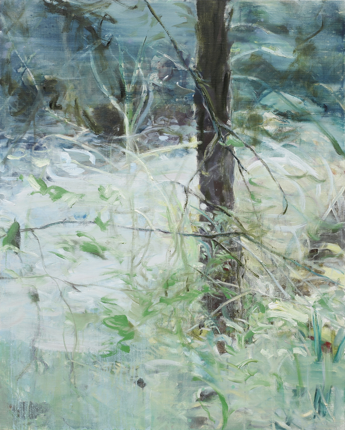 정상곤은 작업실 인근 대지산을 산책하며 접한 풍경을 화폭에 담아왔다. 그의 시선은 산의 내부로 직진하며, 나무와 덤불 숲이 바닥과 함께 어질하게 밀려온다. 특정 장소가 뿜어내는 현장감을 그림의 즉흥성으로 풀어내는 작가는 언어나 개념으로 환원될 수 없는 순간들을 포착한다.