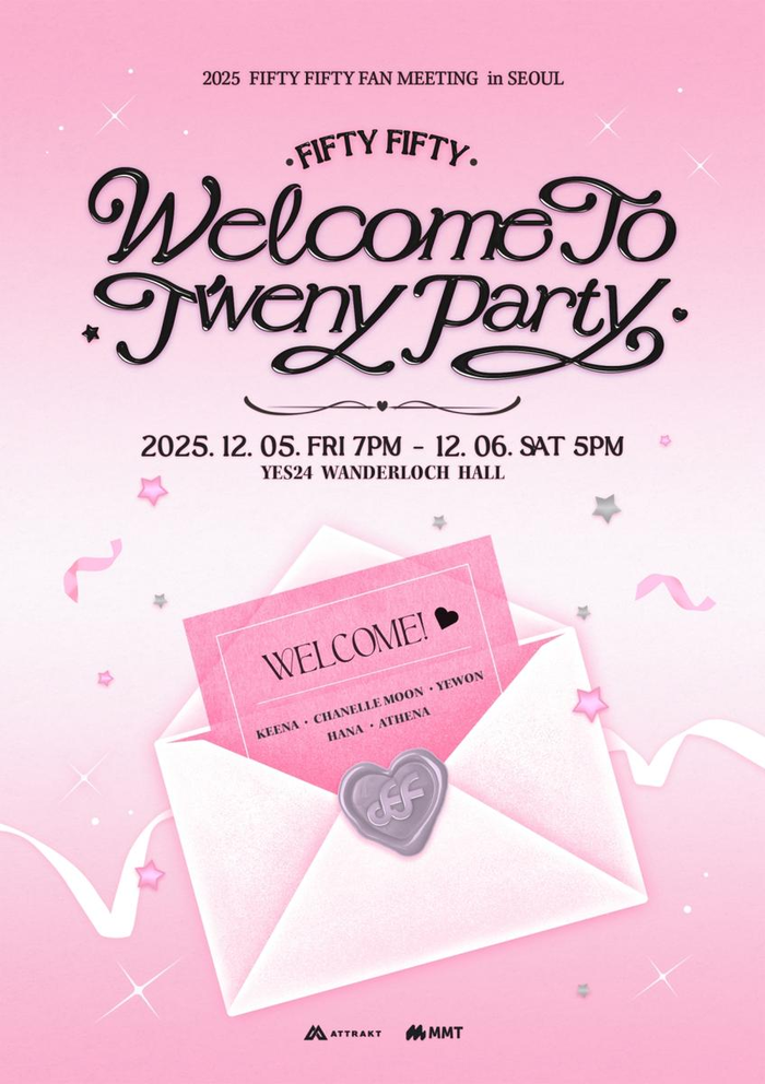 피프티피프티는 오는 12월 5일과 6일 서울 예스24 원더로크홀에서 공식 팬미팅 ‘피프티피프티 : 웰컴 투 트웨니 파티(FIFTY FIFTY : Welcome to Tweny Party)’를 연다. 이번 팬미팅은 데뷔 이후 처음으로 열리는 공식 행사로, 트웨니를 초대하는 특별한 파티 콘셉트로 꾸며질 예정이다.