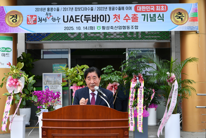 한편, 한우 수출을 개시한 횡성축협은 10월 14일 오전 11시, 횡성축협 본점 주차장에서 ‘횡성한우 UAE 수출 기념식’을 개최했다.