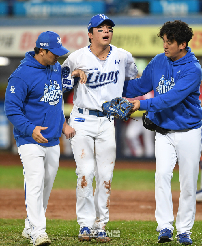 이때 김영웅이 쓰러졌다. 허리에 통증을 크게 느꼈다. 코치와 트레이너가 나와 상태를 살폈고, 부축받으며 경기장에서 빠졌다. 손주인 코치는 “일단 큰 부상은 아니다. 근육 쪽이다. 오늘 혹은 내일까지는 좀 더 봐야 할 것 같다”고 설명했다.