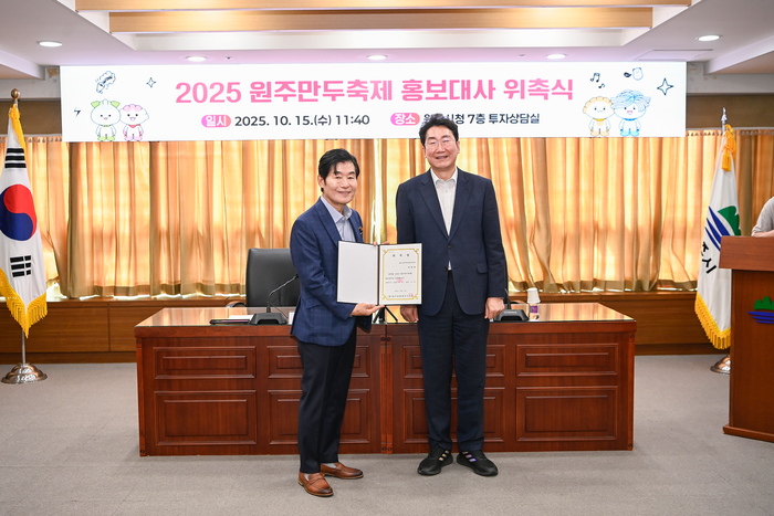 10월 15일 오전 11시 40분, 원주시청 7층 투자상담실에서 진행된 홍보대사 위촉식에는 원강수 시장, 박창호 원주문화재단 대표이사, 이연복 셰프, 축제 관계자들이 참석했다.