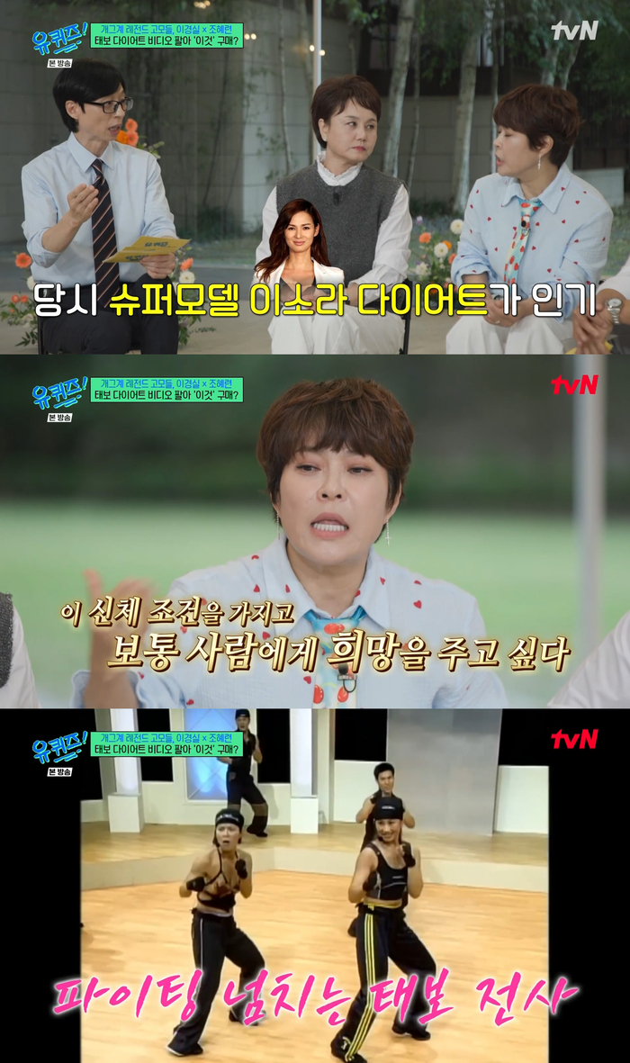이에 이경실은 “이소라씨의 경우 이소라 자체가 예쁘지만 조혜련의 비디오의 경우 ‘조혜련이 하니 나도 되겠다’고 접근하게 된 것 같다”고 덧붙였다. 조혜련은 “주고객층은 ‘살찐 분들’”이라고 너스레를 떨어 촬영장을 웃음 바다로 만들었다.