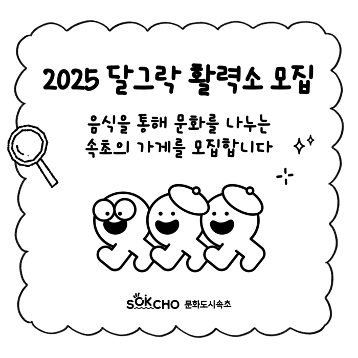 [스포츠서울ㅣ김기원기자](재)속초문화관광재단(이사장 이병선, 속초시장)은 대한민국 문화도시 조성 사업의 일환으로, 음식문화 향유공간 조성 사업인 ‘2025 달그락 활력소’ 참여 가게를 10월 26일까지 모집한다.