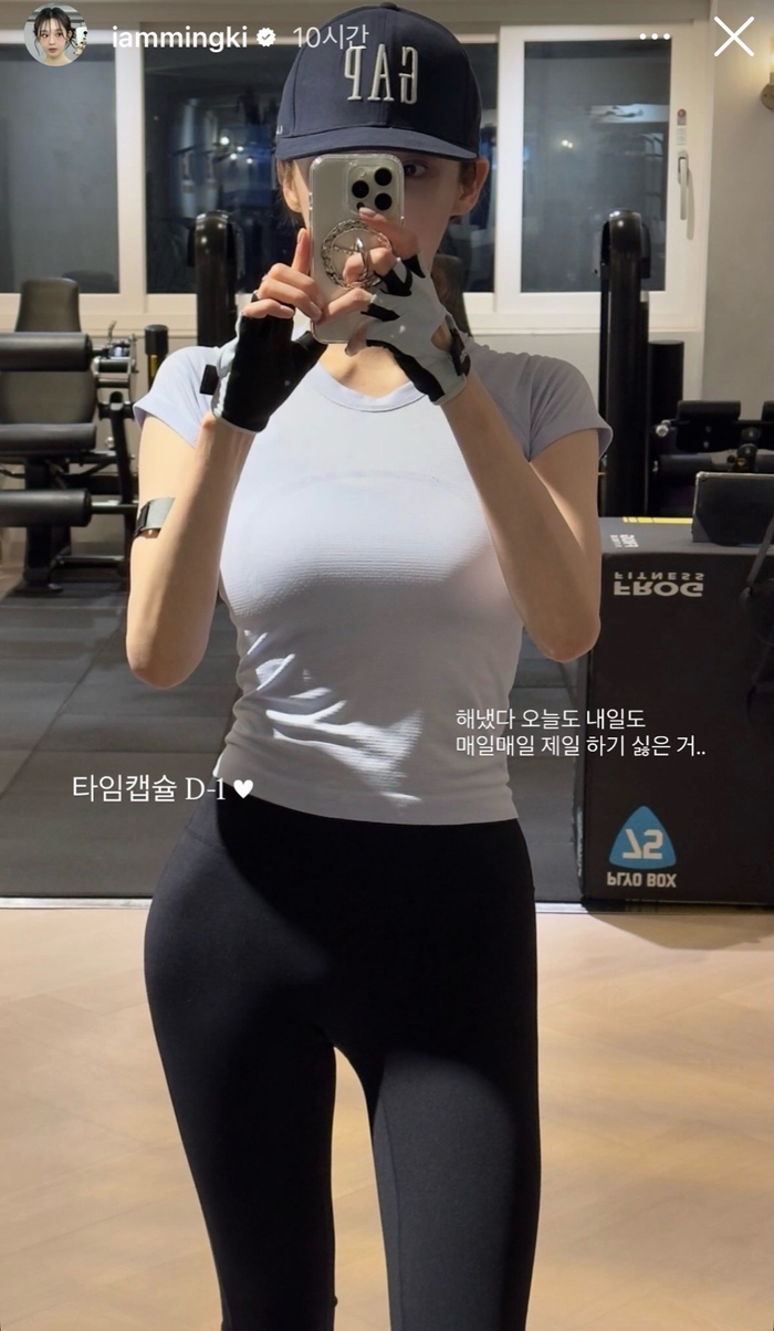 사진 속 그는 ‘타임캡슐 D-1♥’이라는 문구와 함께 “해냈다. 오늘도 내일도, 매일매일 제일 하기 싫은 거…”라는 멘트를 덧붙이며 솔직한 일상을 전했다.