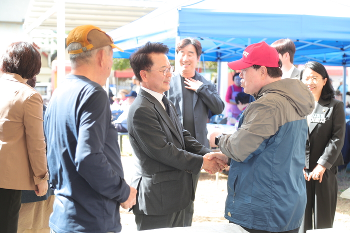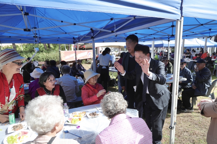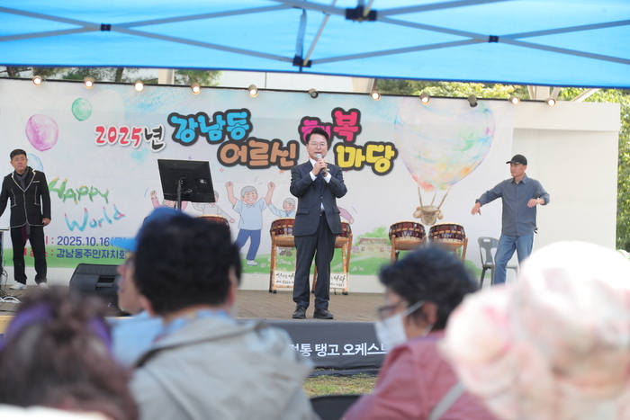 [스포츠서울ㅣ춘천=김기원기자]육동한 춘천시장은 강남동 주민자치회(회장 원상봉)가 16일 풍물시장 야외무대에서 개최한 ‘강남동 어르신 행복마당’에 참석했다. 주민주도 마을사업의 하나로 마련된 이 행사에는 동네 어르신 400여 명이 참석해 흥겨운 시간을 보냈다.