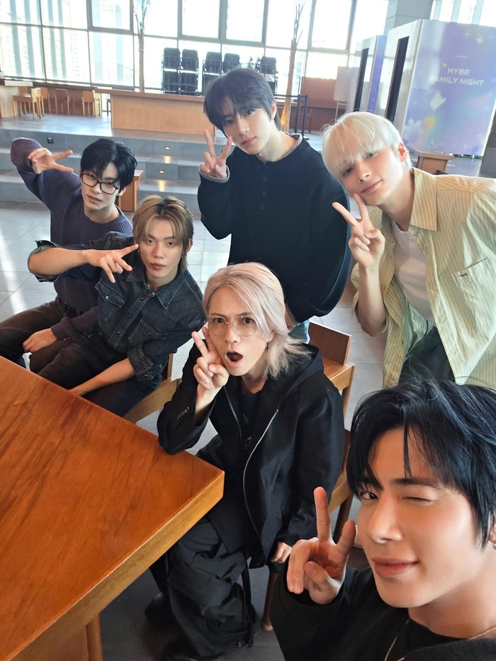 하이도를 중심으로 수빈, 연준, 범규, 태현, 휴닝카이 등 투모로우바이투게더 멤버들이 주변에서 다정하게 브이(V) 포즈를 취하고 있다. 투모로우바이투게더의 훈훈한 비주얼은 물론이고 세월이 무색한 하이도의 동안 외모도 새삼 놀라움을 안긴다.