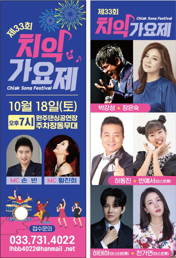 올해로 33회째를 맞은 치악가요제는 전국 단위의 참가자들이 몰리는 명실상부한 아마추어 가요경연 무대로, 앞서 400여 명이 예선에 참가해 열띤 경쟁을 펼쳤다. 예심을 통과한 12팀이 본선 무대에 올라, 대상과 금상, 은상, 특별상 등 다양한 부문에서 기량을 겨룬다.