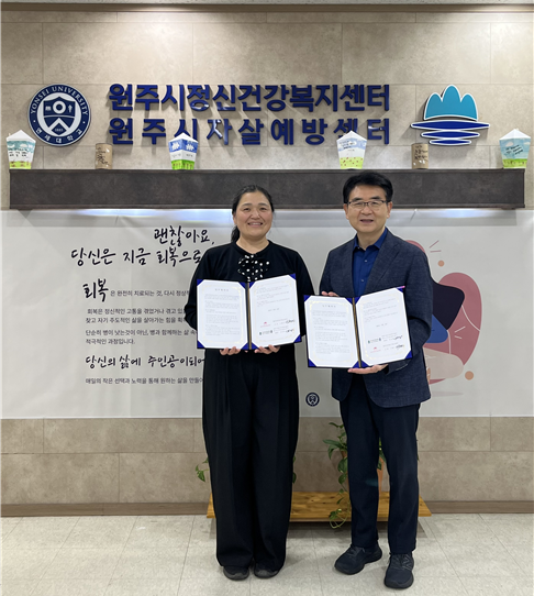 [스포츠서울ㅣ원주=김기원기자]원주시정신건강복지센터(센터장 민성호)와 원주시여자단기청소년쉼터(소장 이혜선)는 지난 14일 위기 청소년 정신건강 조기 개입과 서비스 연계 체계 강화를 위한 업무협약을 체결했다.