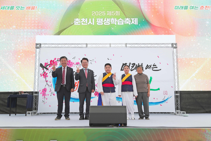 [스포츠서울ㅣ춘천=김기원기자]‘제5회 춘천시 평생학습축제’가 17일 시청 광장과 로비에서 개막했다. 이날 개막식에는 금산초 청음어린이예술단의 식전 공연과 평생교육 유공자 표창이 진행된 가운데 방송인 조혜련의 무대로 분위기가 뜨겁게 달아올랐다.