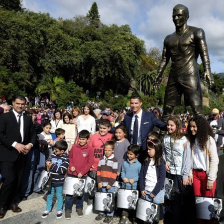 높이 3.4m에 달하는 동상은 국제축구연맹(FIFA) 발롱도르(Ballon d'Or)를 두 번 수상한 것을 비롯해 영광의 순간을 기념하기 위해 고향에 만들어진 호날두 박물관 앞에 세워졌다.