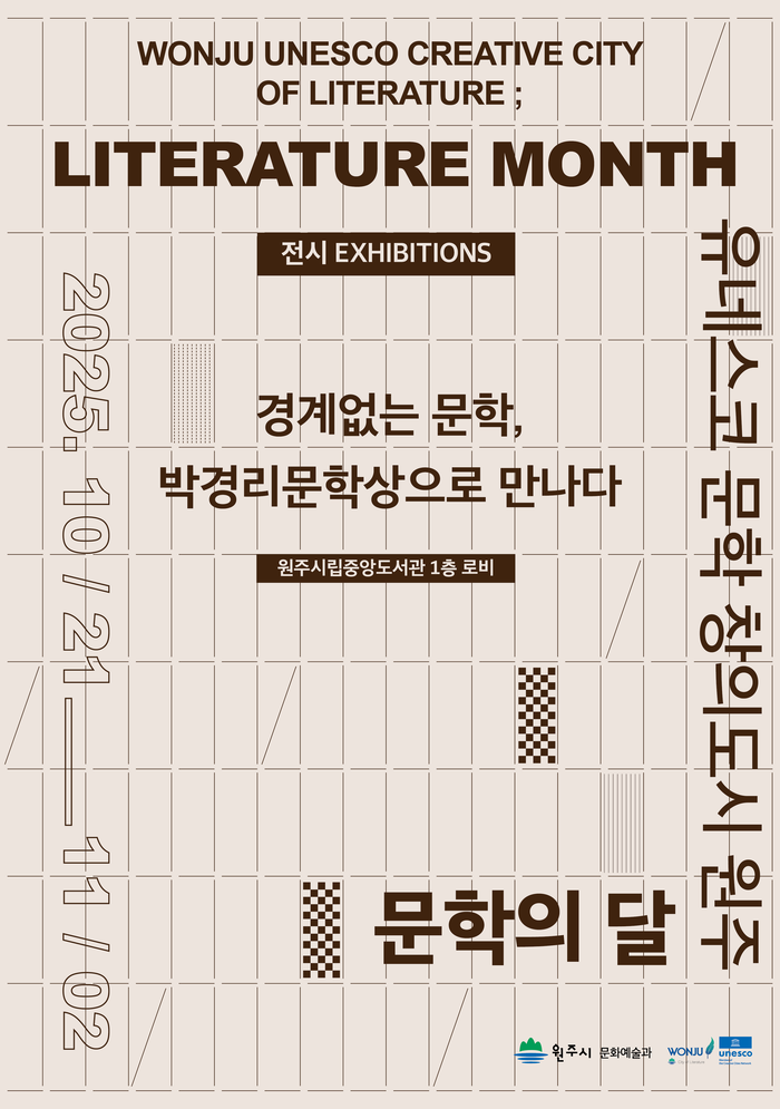 [스포츠서울ㅣ원주=김기원기자]원주시는 10월 20일부터 11월 2일까지 시립중앙도서관 1층 로비에서 2025 원주 문학의 달 기념행사 일환으로, ‘경계없는 문학, 박경리문학상으로 만나다’ 전시를 진행한다.