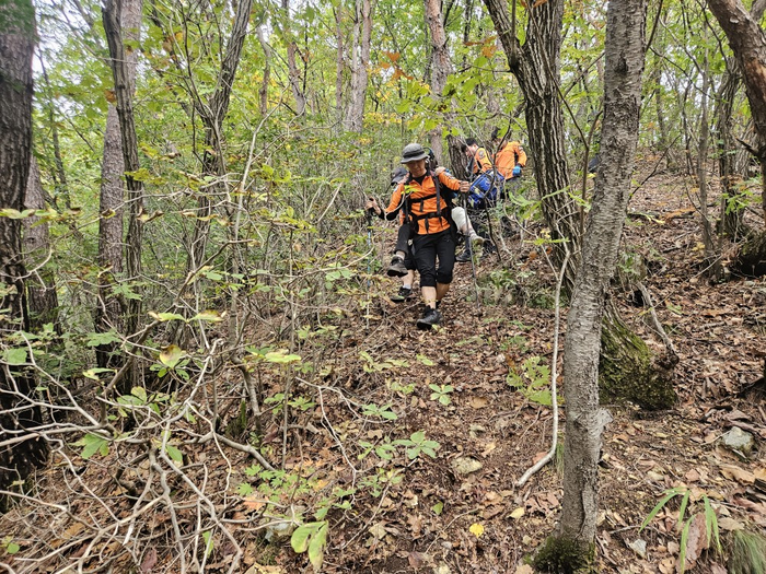 H(58세)씨는 무릎 부위와 정강이 옆쪽을 다친 상태로 의식은 명료하나 통증을 호소하고 있었고 출동한 구조대원과 구급대원은 2시간 30여분 만에 부상당한 H(58)씨를 응급처치 후 업고 하산해 안전하게 병원으로 이송했다.