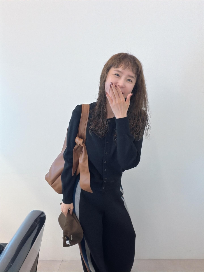 신지는 히피펌 스타일과 함께 발랄한 앞머리를 연출해 특유의 상큼하고 러블리한 매력을 극대화했다. 블랙 카디건과 와이드 팬츠를 입고 카메라를 향해 익살스러운 포즈를 취하거나, 수화기 모양의 소품을 들고 환하게 웃는 모습은 변신에 대한 만족감을 그대로 보여준다.