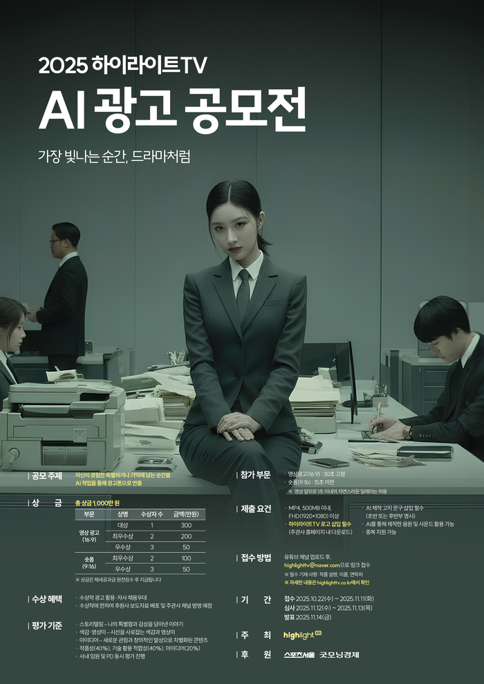 하이라이트TV 공모전 관계자는 “이번 행사는 단순한 기술 경쟁이 아니라 ‘광고처럼 내 인생의 한 장면을 연출하는’ 감성 프로젝트”라며 “AI라는 새로운 언어로 인생의 순간을 얼마나 섬세하게 풀어내느냐가 관건이 될 것”이라고 전했다.